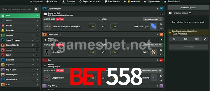 A aposta bet558 oferece aos jogadores a experiência mais conveniente de apostas em eSports!